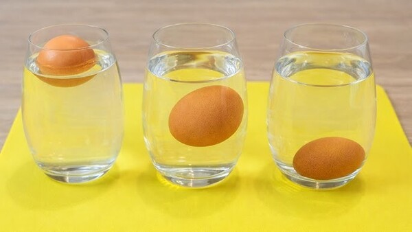 계란을 물에 담가보세요 ''이렇게 된 계란은'' 신선하지 않은 계란입니다.